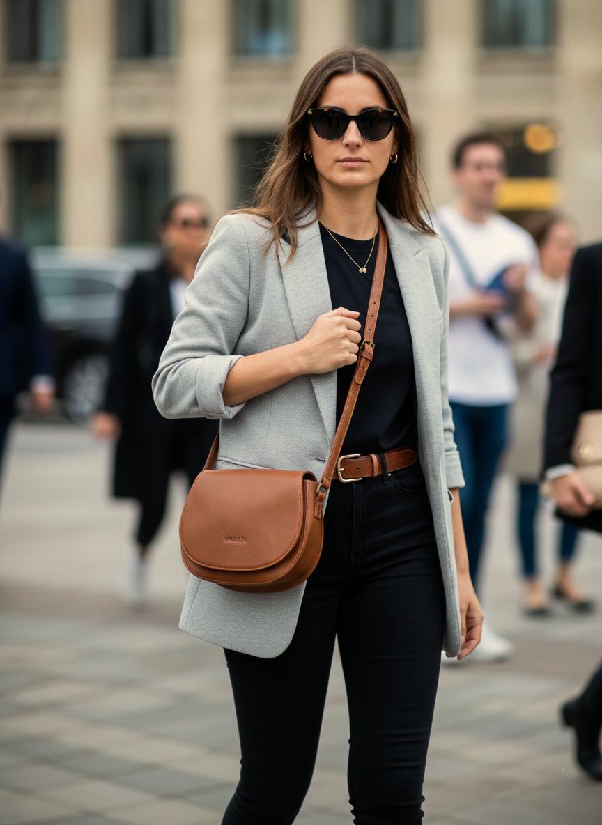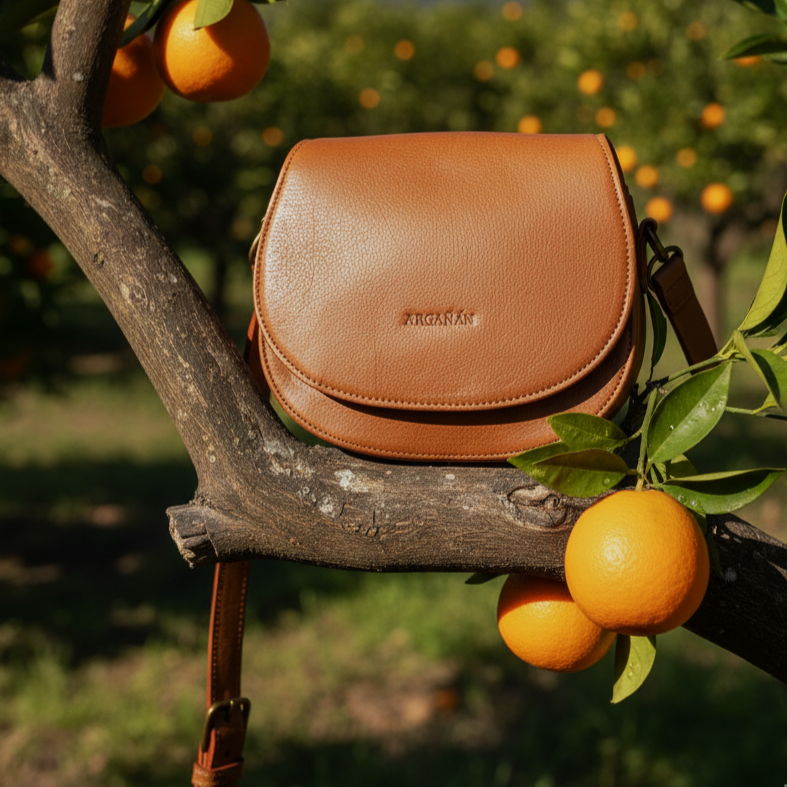 Bandolera Sevilla confeccionada en cuero vacuno. Gracias a su correa de hombro ajustable y desmontable te permite adaptarla a tu estilo.