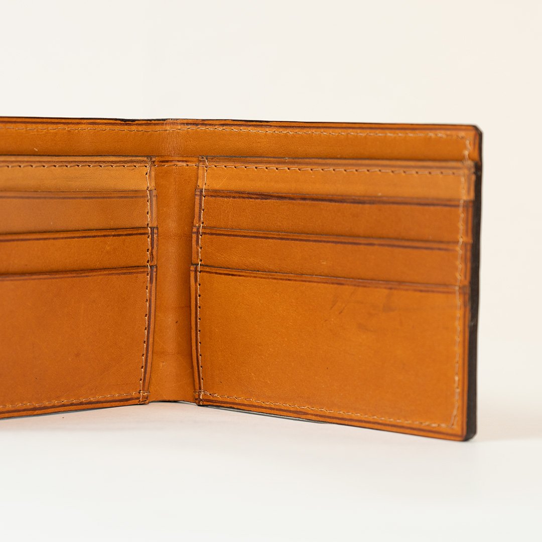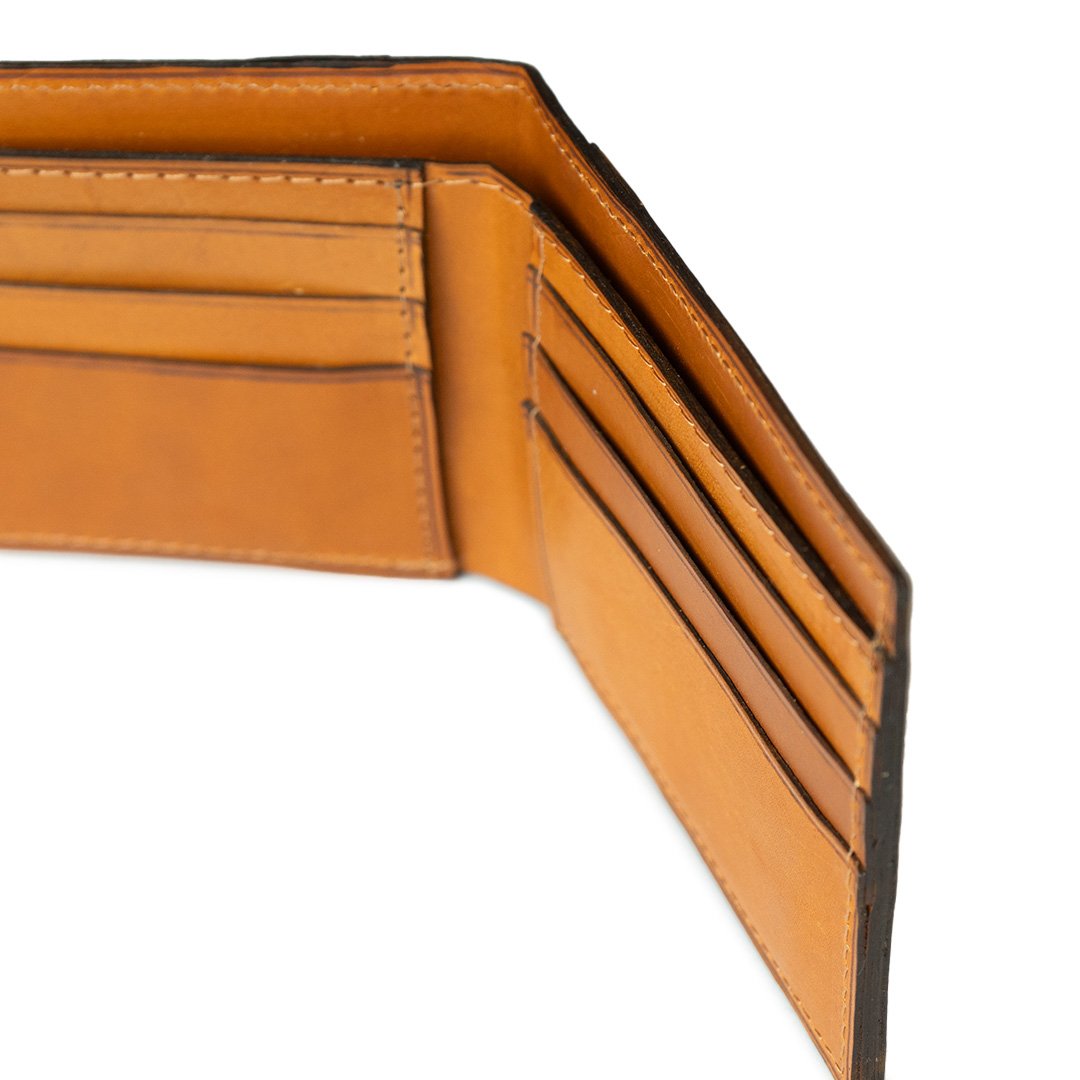 La billetera Talampaya tiene un interior forrado en cuero tipo suela curtido vegetal, y cuenta con 6 ranuras para tarjetas, 2 divisiones para billetes, y 2 bolsillos externos, que permiten llevar todo organizado.