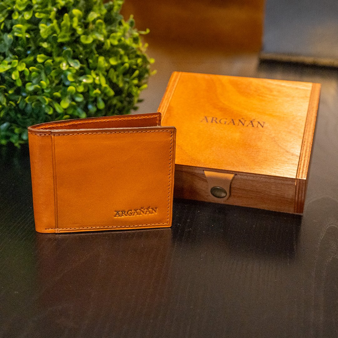 Cada billetera se entrega en una exclusiva caja de madera de cedro lustrado, que la convierte en un obsequio elegante que deja huella.