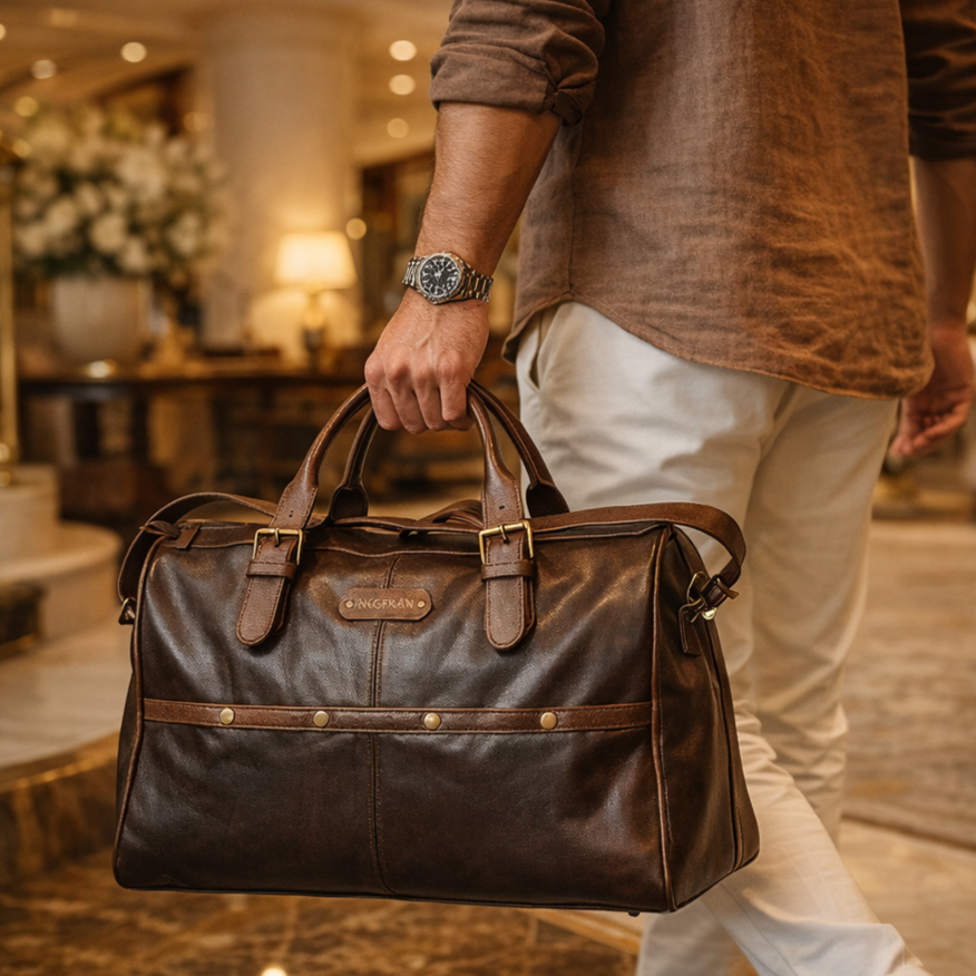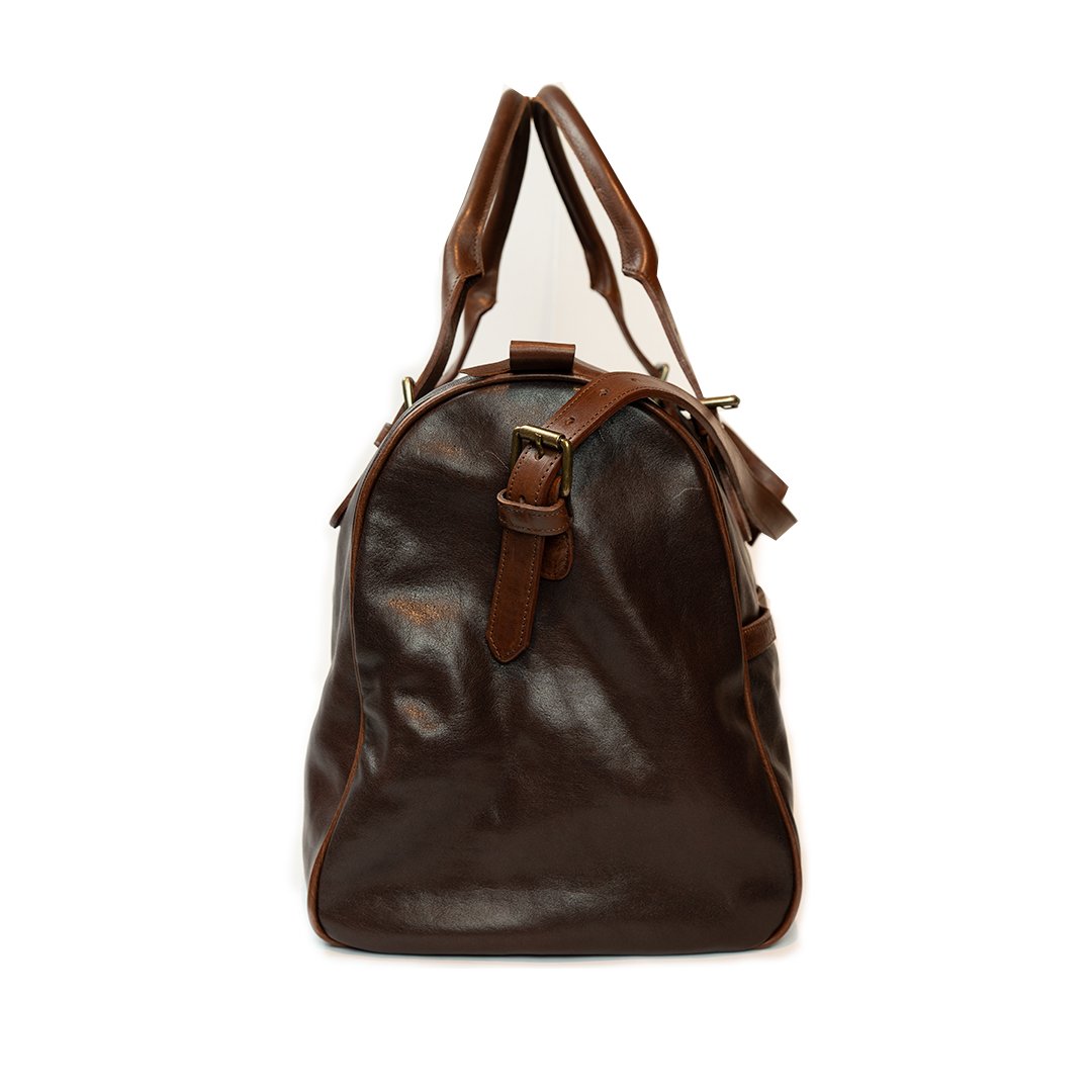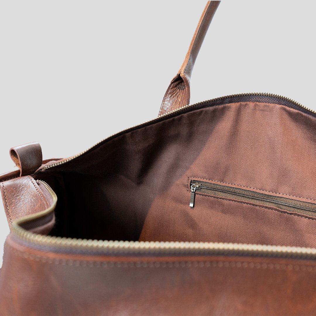 El bolso de viaje Capri se encuentra confeccionado 100% en cuero vacuno, su diseño moderno, incorpora un acceso superior mediante cierre metálico YKK, protegiendo tus pertenencias y que puedas acomodarlas con total facilidad en su amplio interior forrado en tela que aporta elegancia. En su exterior tiene dos bolsillos grandes con broches para que lleves lo más importante al alcance de la mano y organizadas. Además posee un bolsillo en su interior para que puedas llevar tus cosas protegidas y ordenadas. Gracias a sus asas cortas, y correa desmontable y ajustable, el Bolso Capri se puede llevar en la mano, al hombro o cruzado adaptándose a tu estilo.