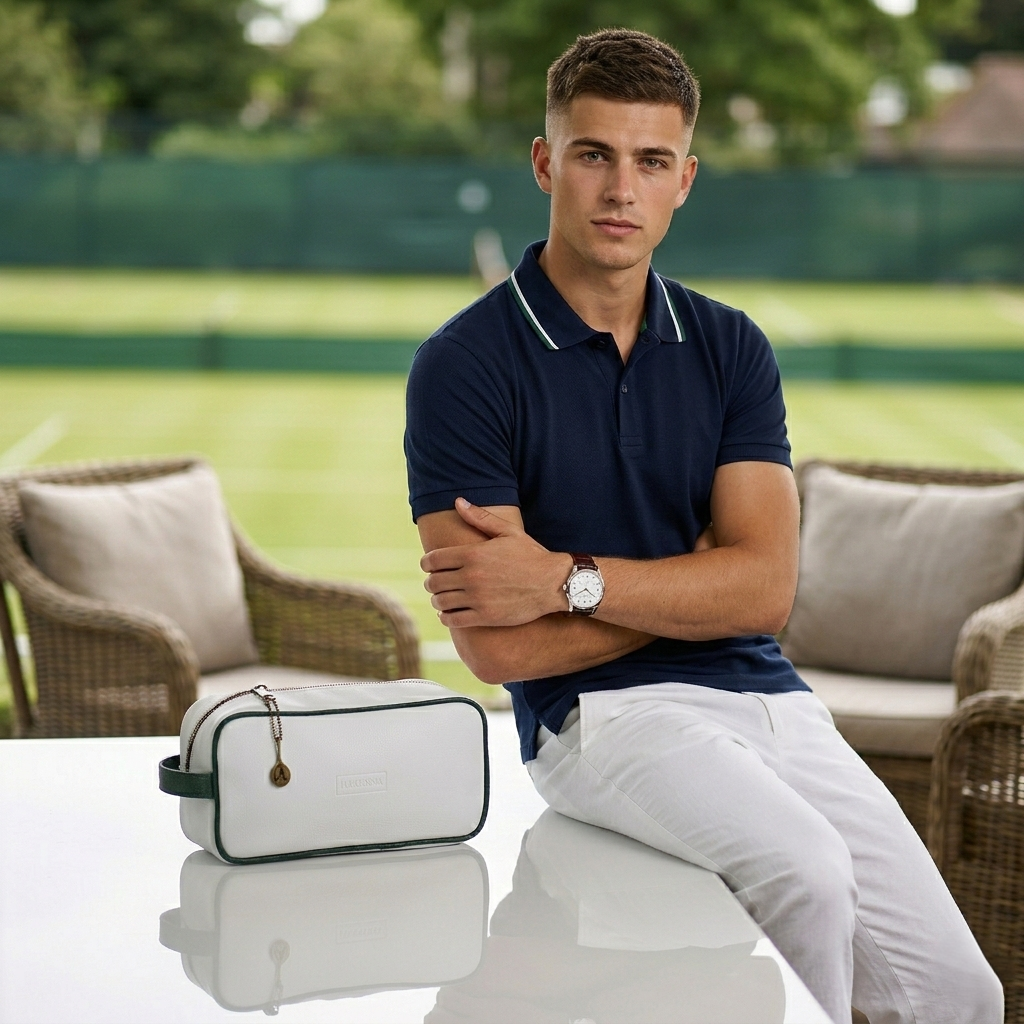 El neceser Lucky Loser, une la sofisticación del cuero vacuno con la frescura del deporte. Una pieza moderna y funcional para quienes viven con estilo dentro y fuera de la cancha.