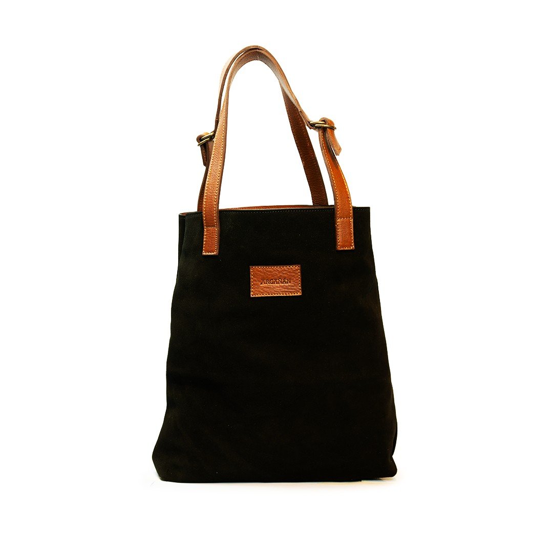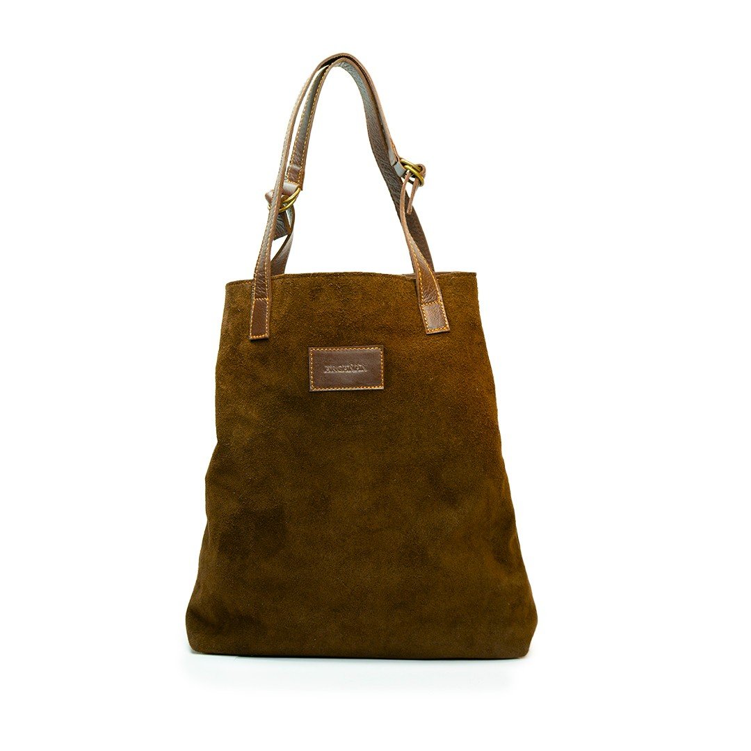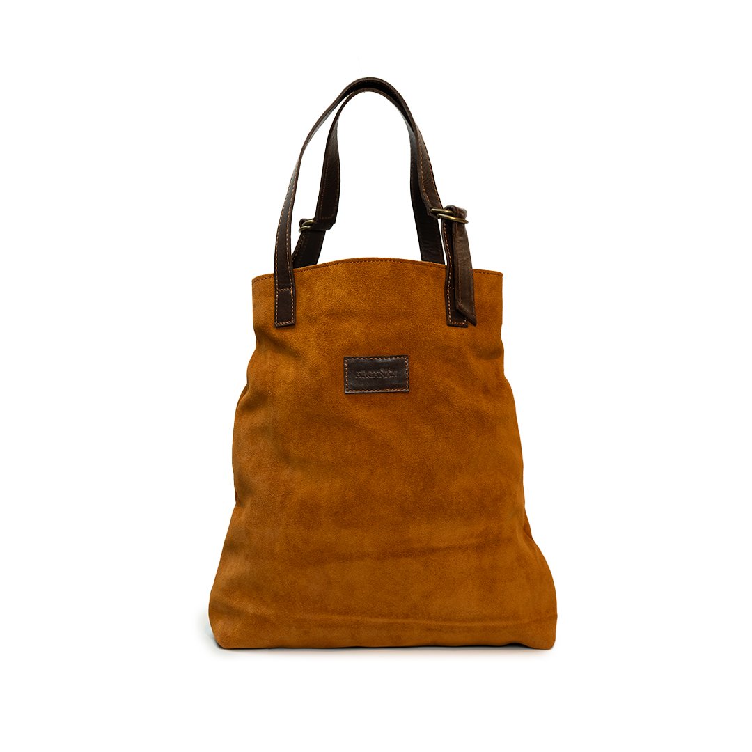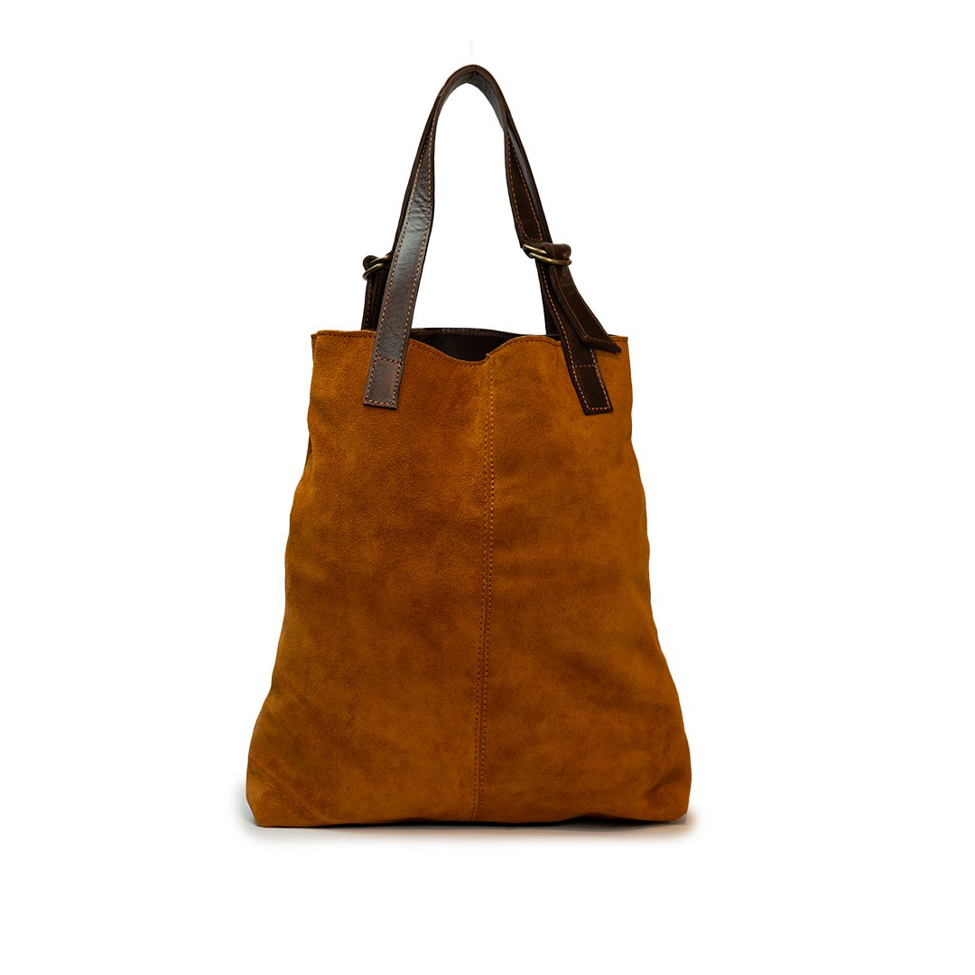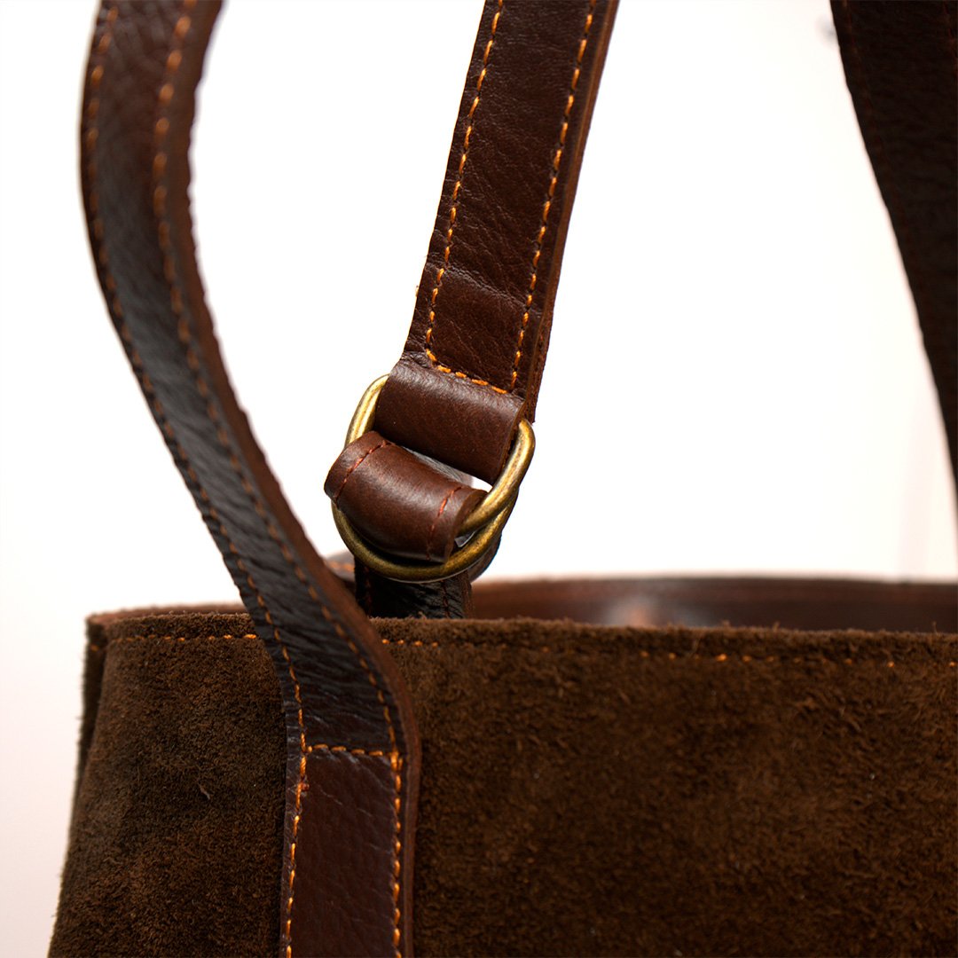 Tote Bag Pertutto de gamuza con cuero vacuno. Con manijas regulables, que la convierten en el accesorio perfecto para llevar todo lo que necesitás con comodidad y estilo en tu dia a dia.